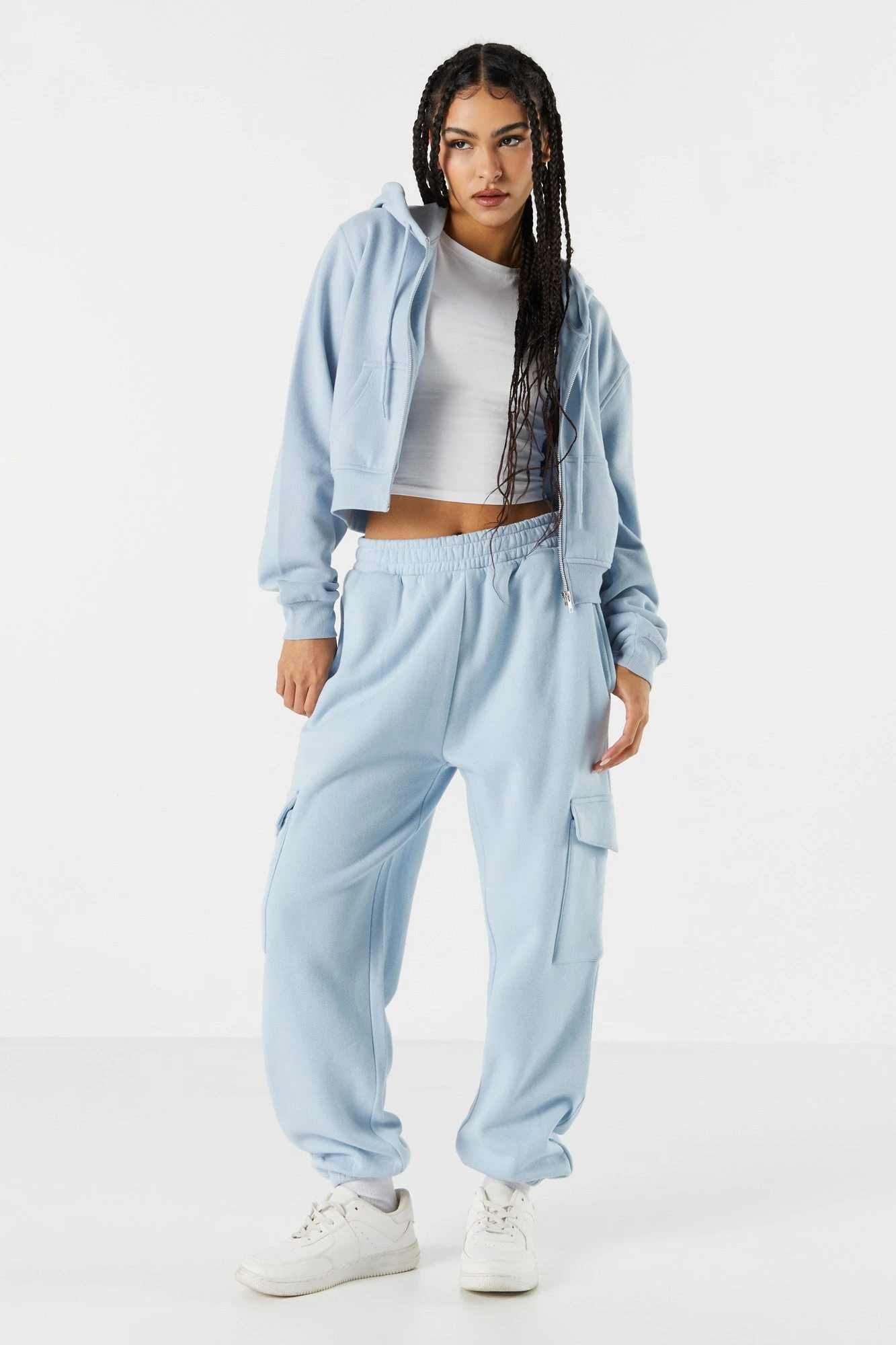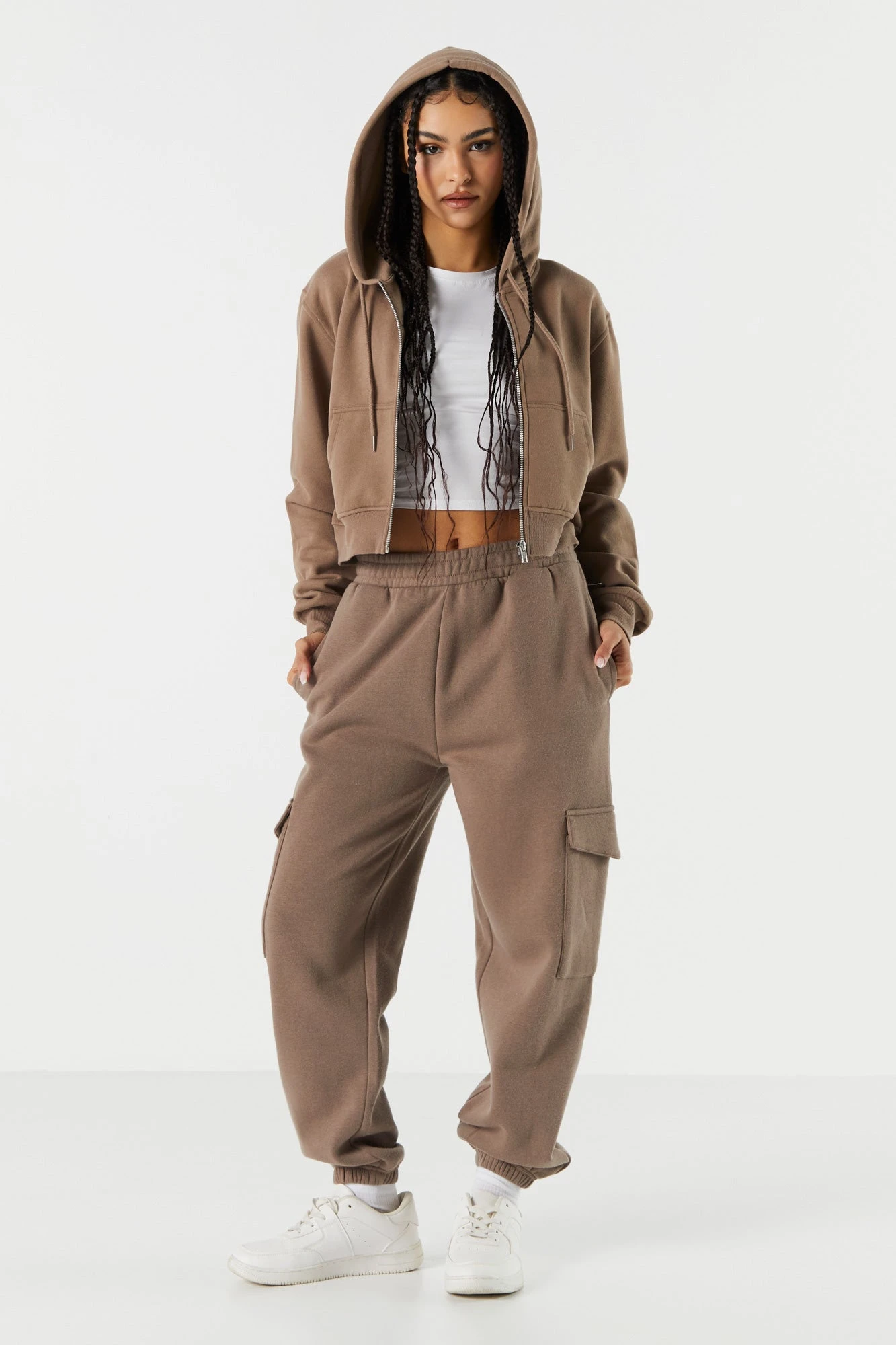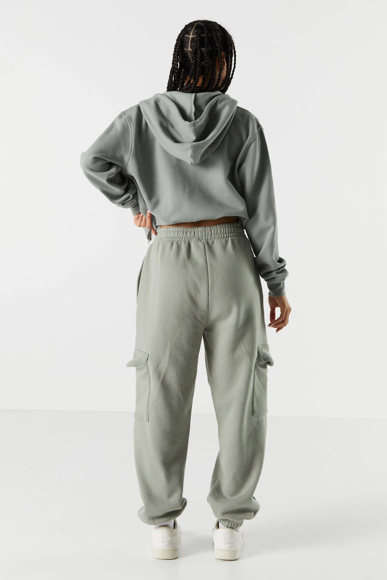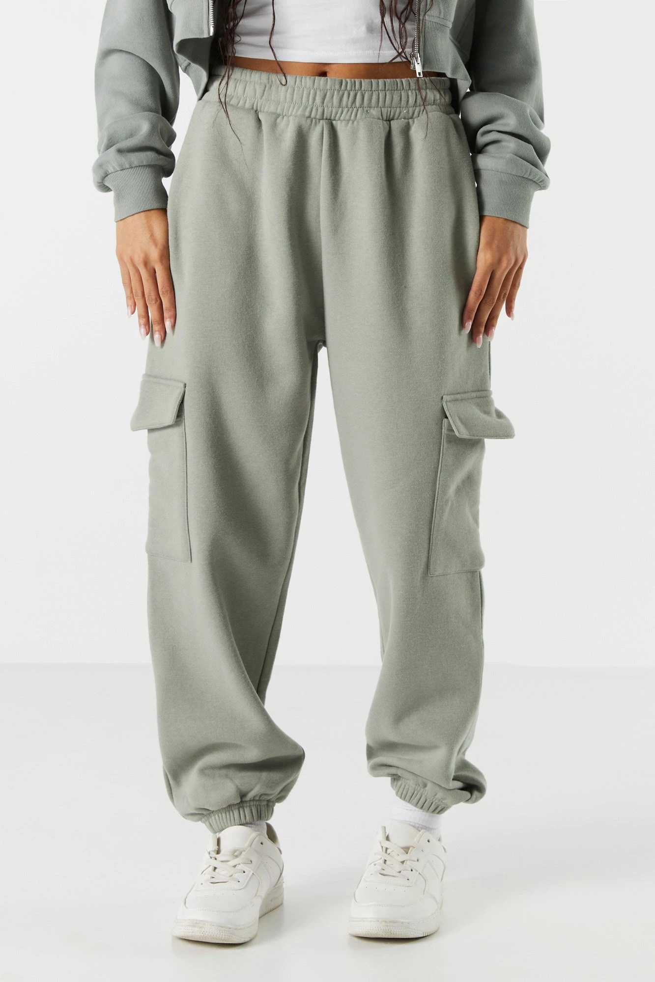 Your off-duty wardrobe is calling… It wants a refresh! This jogger features drawstring waist, cargo pockets, cinched ankles, and fleece material. Size runs small.