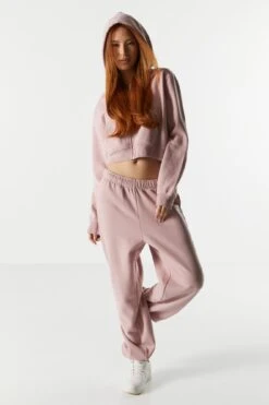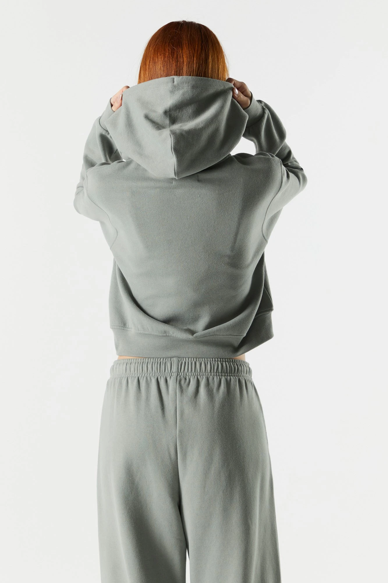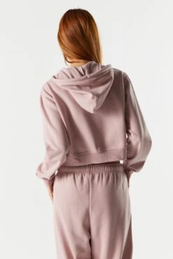 The “sorry I cant make it out tonight” type of loungewear you need in your life! This hoodie features fleece material, drawstring hood, zip-up front, ribbed knit cuffs and hem, split kangaroo pockets, and cropped fit.