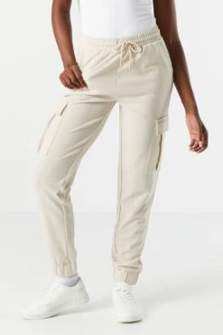 Whether you’re in the mood to dress up or dress down, this cargo jogger is the versatile style of your dreams. This jogger features crepe material, drawstring waist, slide-in pockets, cargo flap pockets, and cinched ankles. Size runs small.