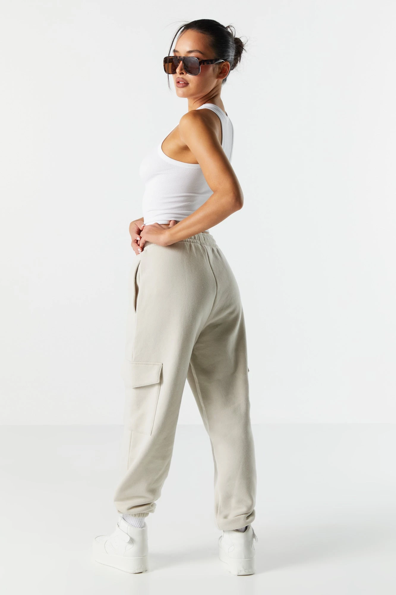 Cargo? More like car-goals! This fleece cargo jogger is taking loungewear to new heights! This jogger features fleece material, drawstring waist, slide-in pockets, cargo pockets, and cinched ankles. Size runs small.