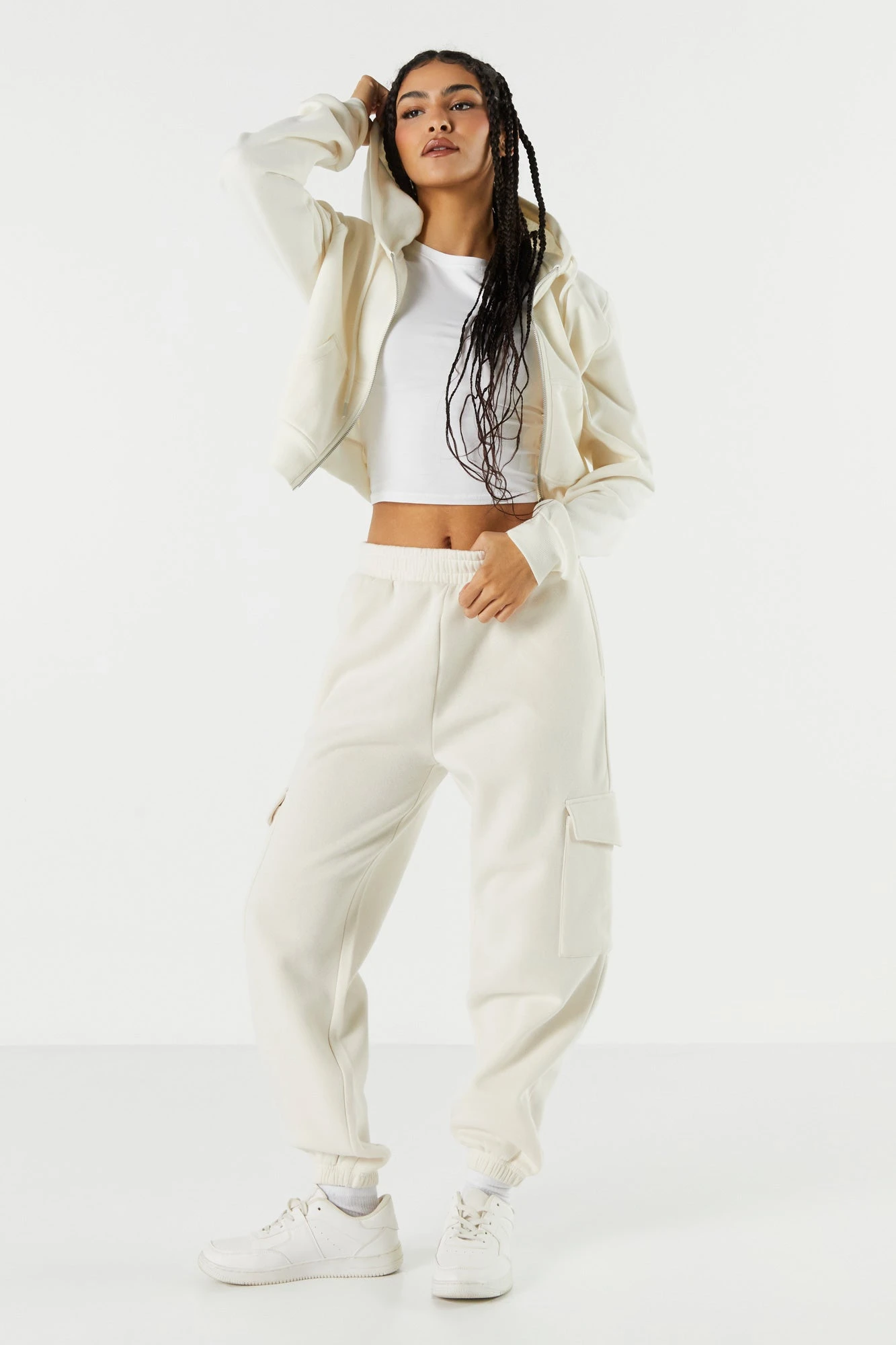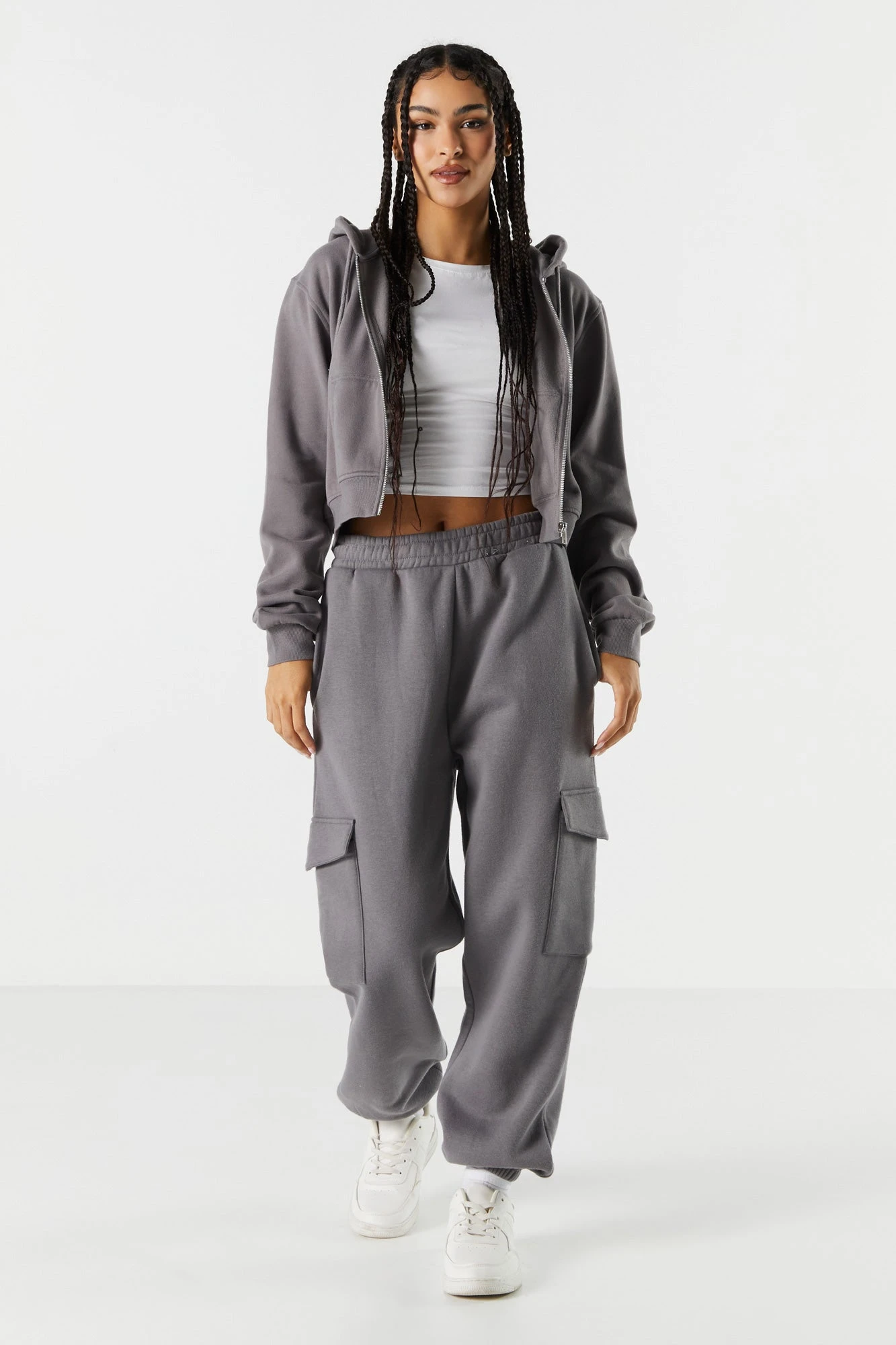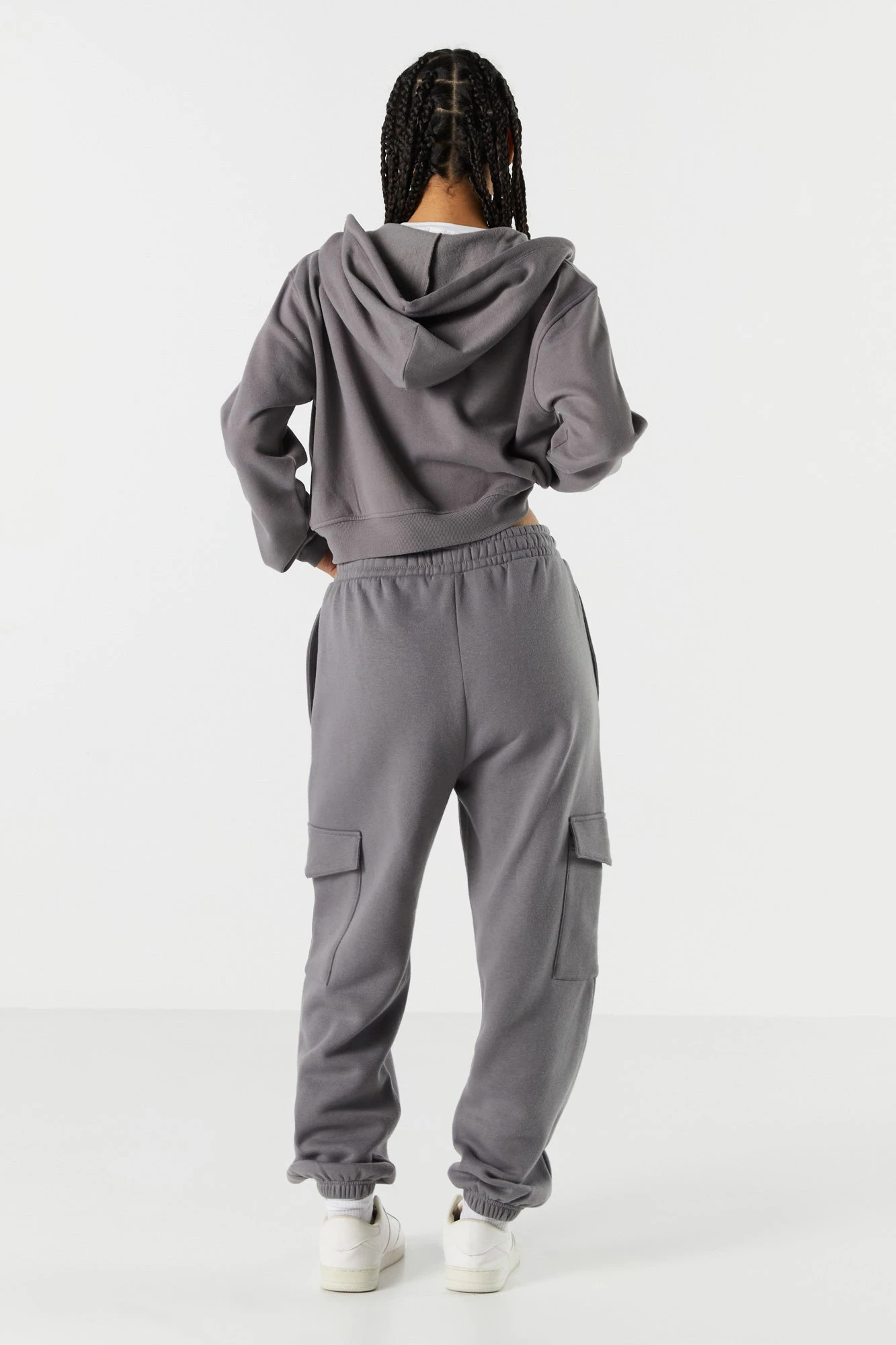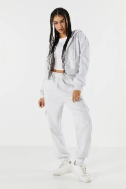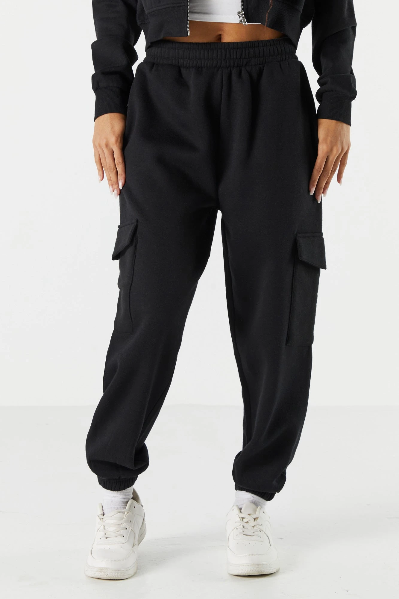 Your off-duty wardrobe is calling… It wants a refresh! This jogger features drawstring waist, cargo pockets, cinched ankles, and fleece material. Size runs small.