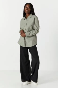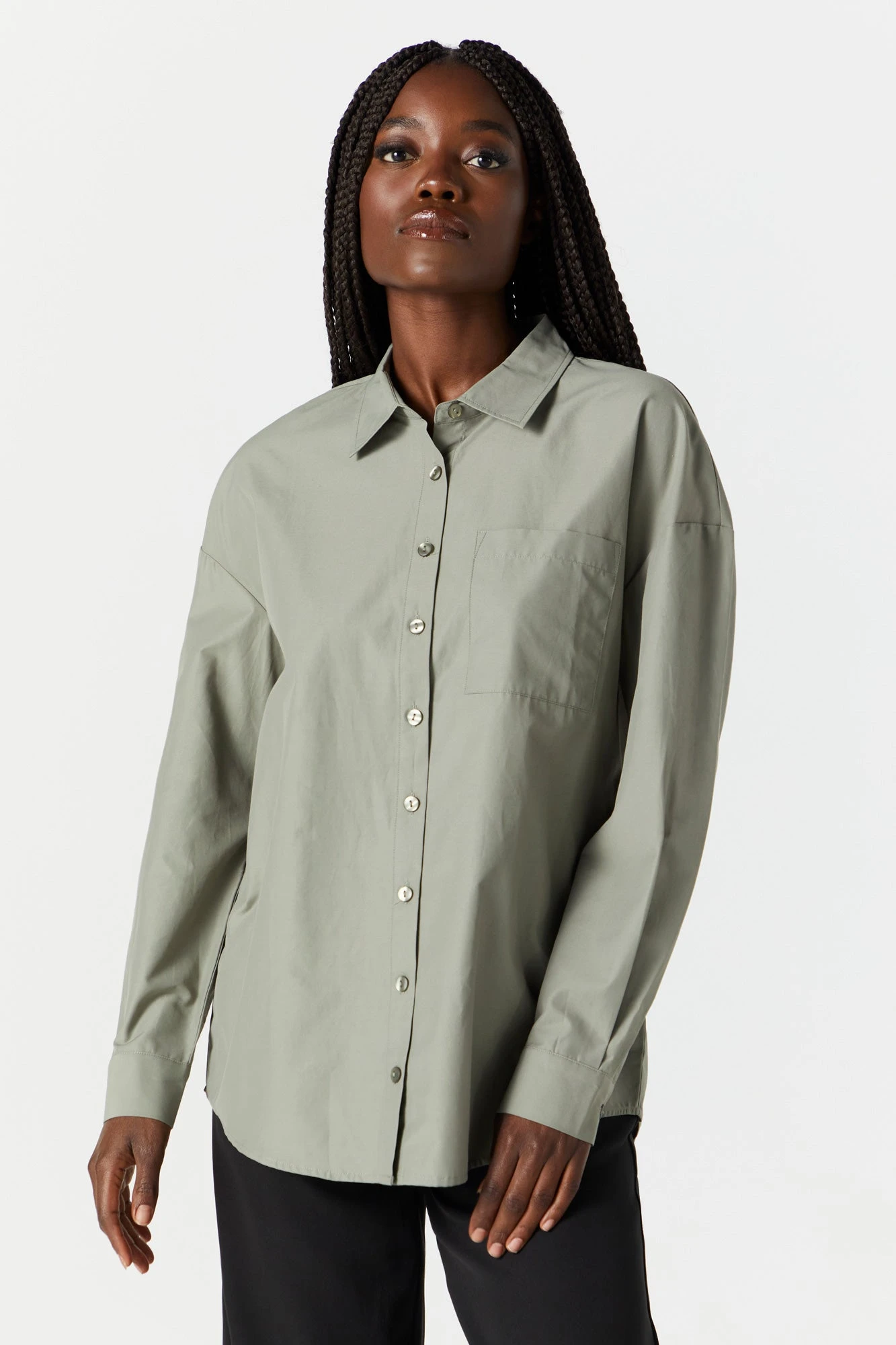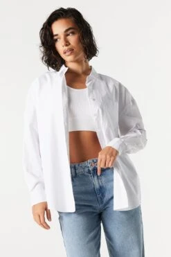 What’s Poplin? This classic button-up is the perfect layering piece! This top features Poplin material, button-up front, collared neckline, single chest pocket, long cuffed sleeves, and oversized fit. Size runs small.