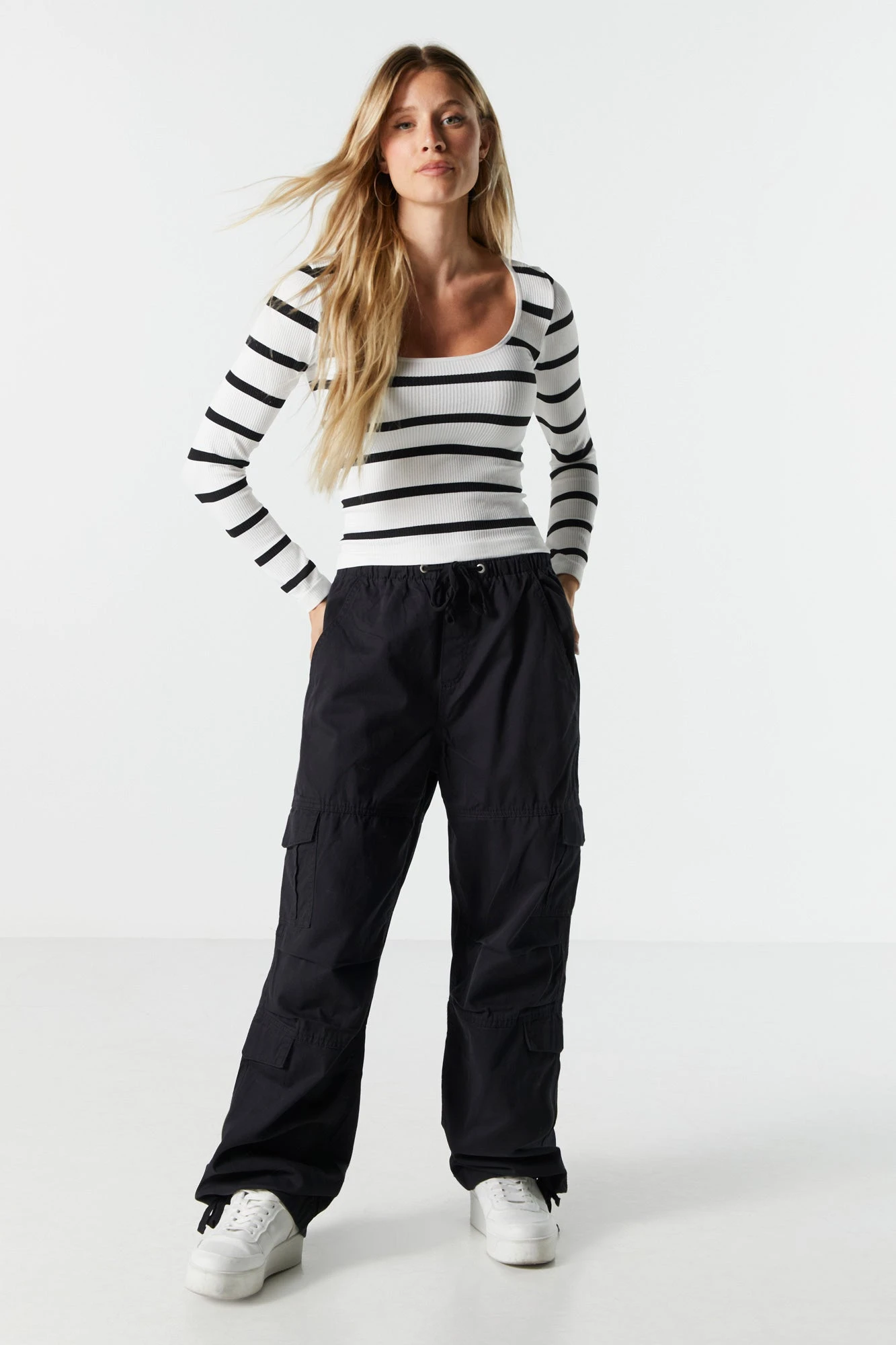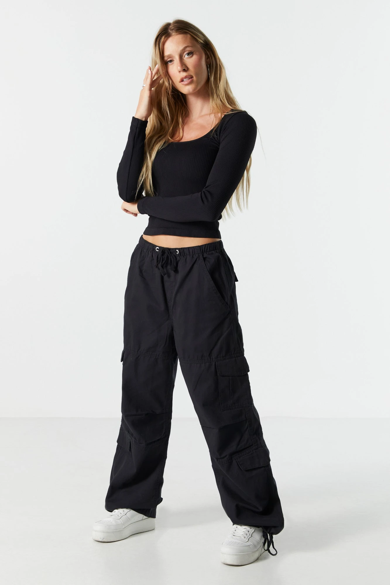 This versatile wardrobe essential is calling your name! This top features seamless construction, all-over ribbing, scoop neck, and long sleeves. Size runs small.