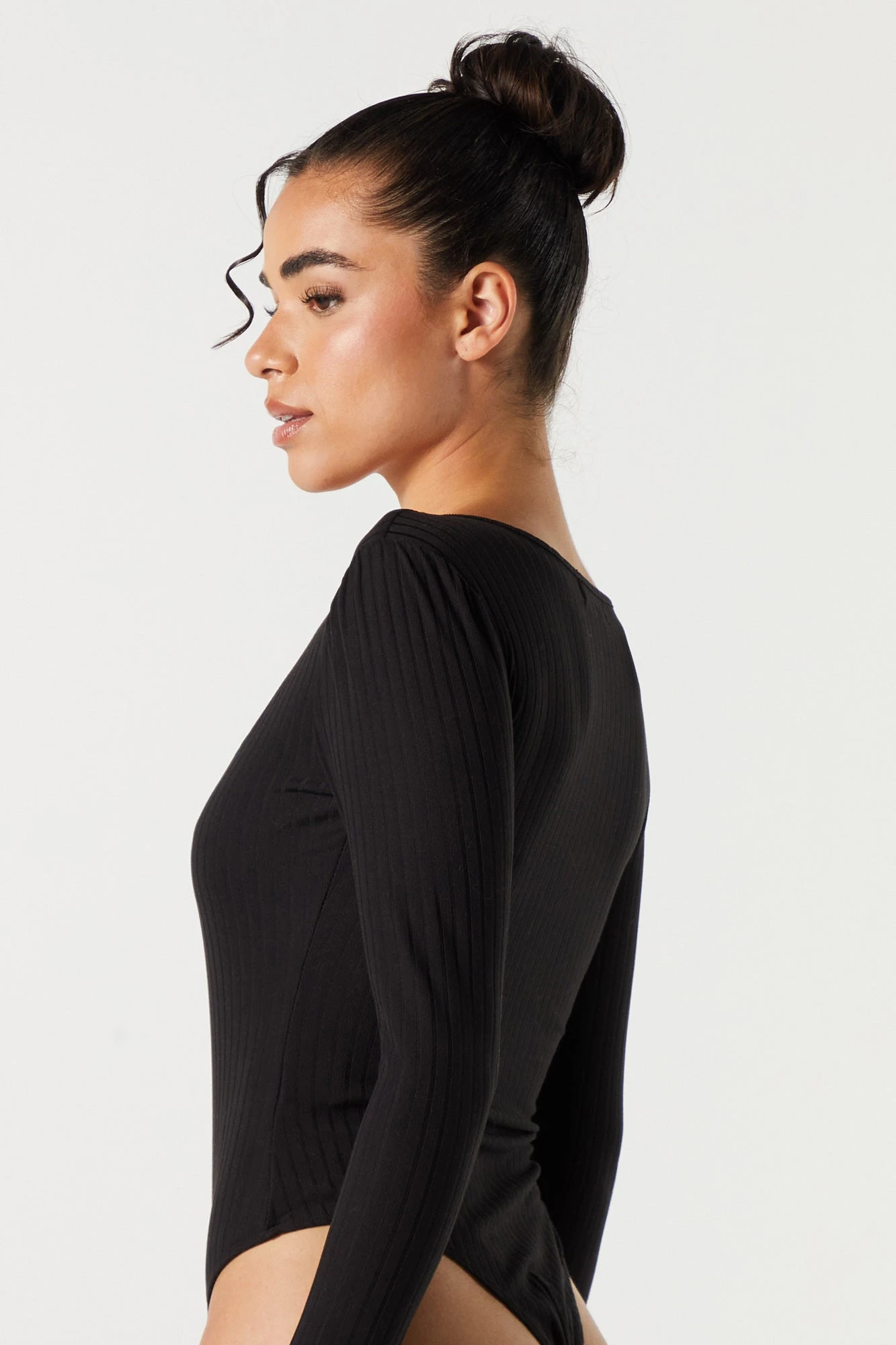 Ribbed Square Neck Long Sleeve Bodysuit