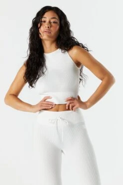 Suitable for gym sessions, yoga, and other active pursuits. Designed with Sommer Ray’s active lifestyle in mind. Sommer Ray’s seamless ribbed active tank is made from seamless and ribbed fabric for a smooth and supportive fit. Features a high neckline and rubber patch logo. Match with Sommer Ray Seamless Ribbed Active Tie Short. Size runs small.