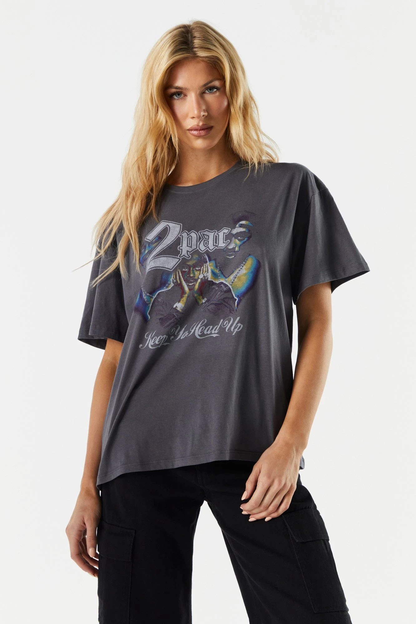 We see no changes. Rep the illest in the game in this iconic Tupac graphic tee! This shirt features front graphic, short sleeves, and boyfriend fit. Size runs small.
