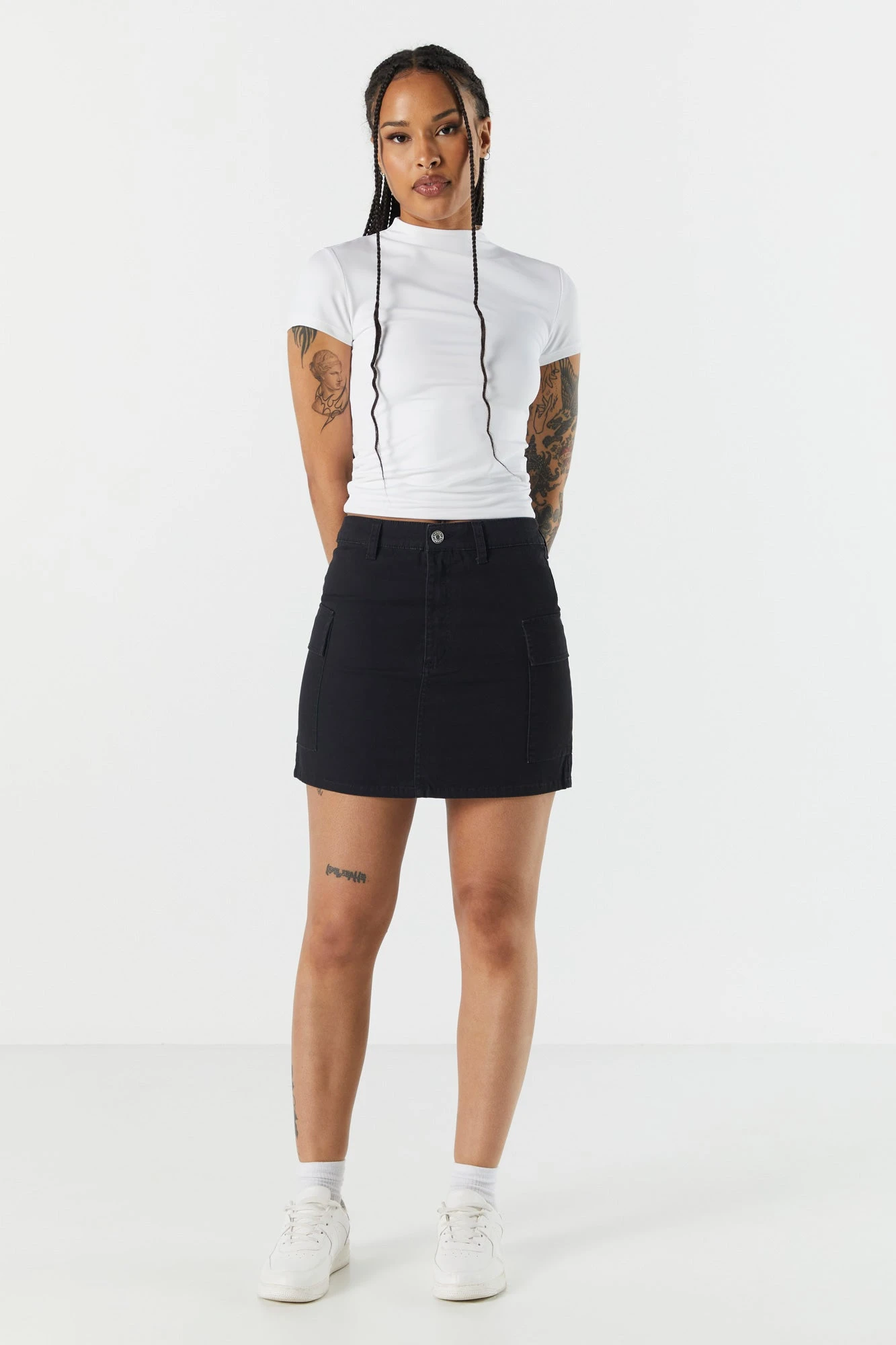 Urban vibes only! Your ticket to effortless summer style is here. This skirt features Poplin material, double button closure, belt loops, cargo pockets, and mini length. Size runs small.