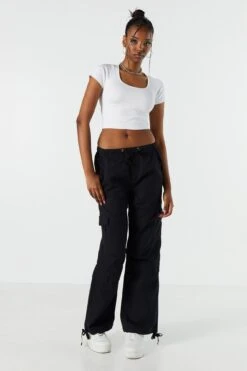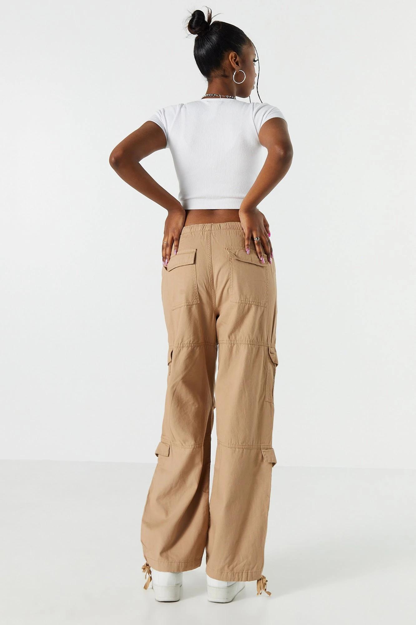 Ughย We are obsessed with these pants! Pair with a little top and this outfit is suddenly chef’s kiss! This pant features twill material, drawstring waist, slide-in pockets, 4 cargo pockets, parachute leg, and bungee ankle closures.