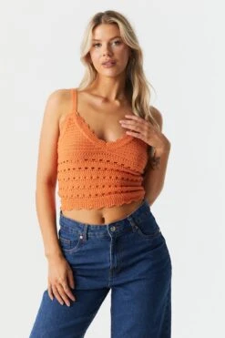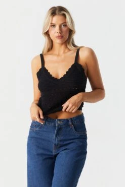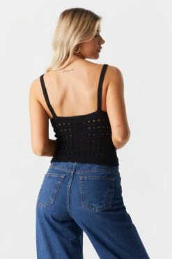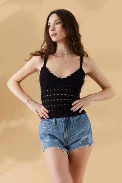 We are crushing on crochet, and this tank is at the top of our list. This tank features v-neck, crop waist and crochet knit. Size runs small.